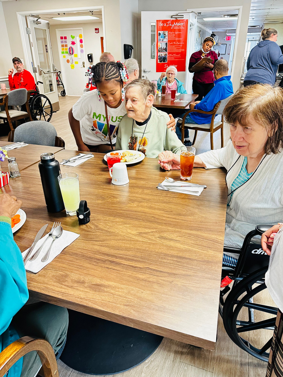 Students went to Lincoln Village Nursing home where the students practiced the quality of service as a leader. They read with elderly residents, played games, served them food, and spent time talking with them. This was meaningful as one elderly man shared that majority of the residents there do not get visits from friends or family, so having the students visit was such a joy. Students wrapped up with group reflection of their time serving at the nursing home.